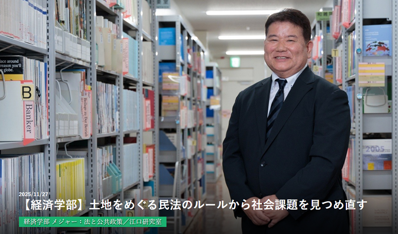 今回は、「ラボ探訪」のコーナーで、経済学部 江口幸治准教授のインタビューをお届けします。
