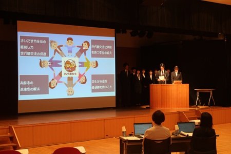 今年のテーマは「誰もが自分らしく暮らせる地域共生社会の実現」で、「社会経済状況が大きく変化し続ける中で、さいたま市が持続可能な成長?発展を続けていくためには、『誰一人取り残さない』というSDGsの理念を基に、直面する課題に迅速かつ的確に対応する必要があり、そのための政策提案を求める」という課題に対して、 埼玉大学、埼玉県立大学、芝浦工業大学、聖学院大学、日本赤十字看護大学さいたま看護学部、日本大学法学部、人間総合科学大学より10チームが参加し、政策案についての発表を行いました。