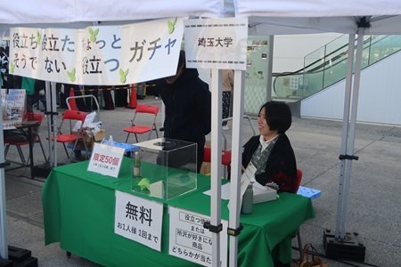 企画のタイトルは「役立ちそうで役立たないちょっと役立つガチャ」で、地域住民の方にちょっと役立つ情報(安くて美味しい店、学割/社会人割がある店、銭湯の場所など)が書かれた紙を埼玉大学のマスコットキャラクターであるメリンちゃんを模したカプセルの中に入れ、それを参加者に引いてもらう、というものです。