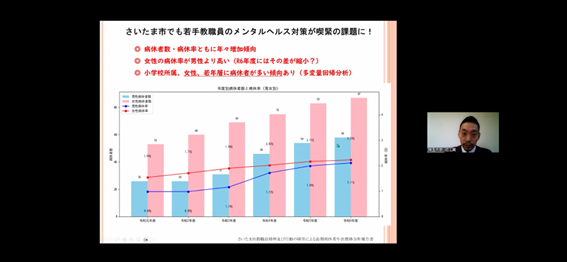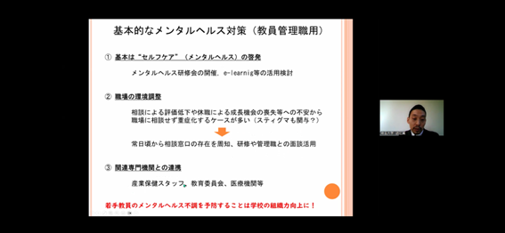 11月21日(金)、オンラインで行われた令和7年度第4回さいたま市立学校校長学校管理研修会において、本学の近江翼教授が「管理職による若手教職員のメンタルヘルス対策」をテーマに、さいたま市立小?中等教育?高等?特別支援学校校長167名を対象とした講演を行いました。